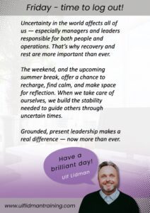 Ulf är en mycket engagerad och fängslande föreläsare. Vi har fått insikter om hur OBM och en relationell ledarstil fungerar, en mycket bättre förståelse i hur man hanterar människor i kris och hur man har Motiverande Kommunikation (MI). Ulfs utbildning både styrker och utmanar samt utmanar till att reflektera över sig själv och hur man hanterar sina relationer. Ulfs inställning och människosyn får deltagarna både ödmjuka och handlingskraftiga